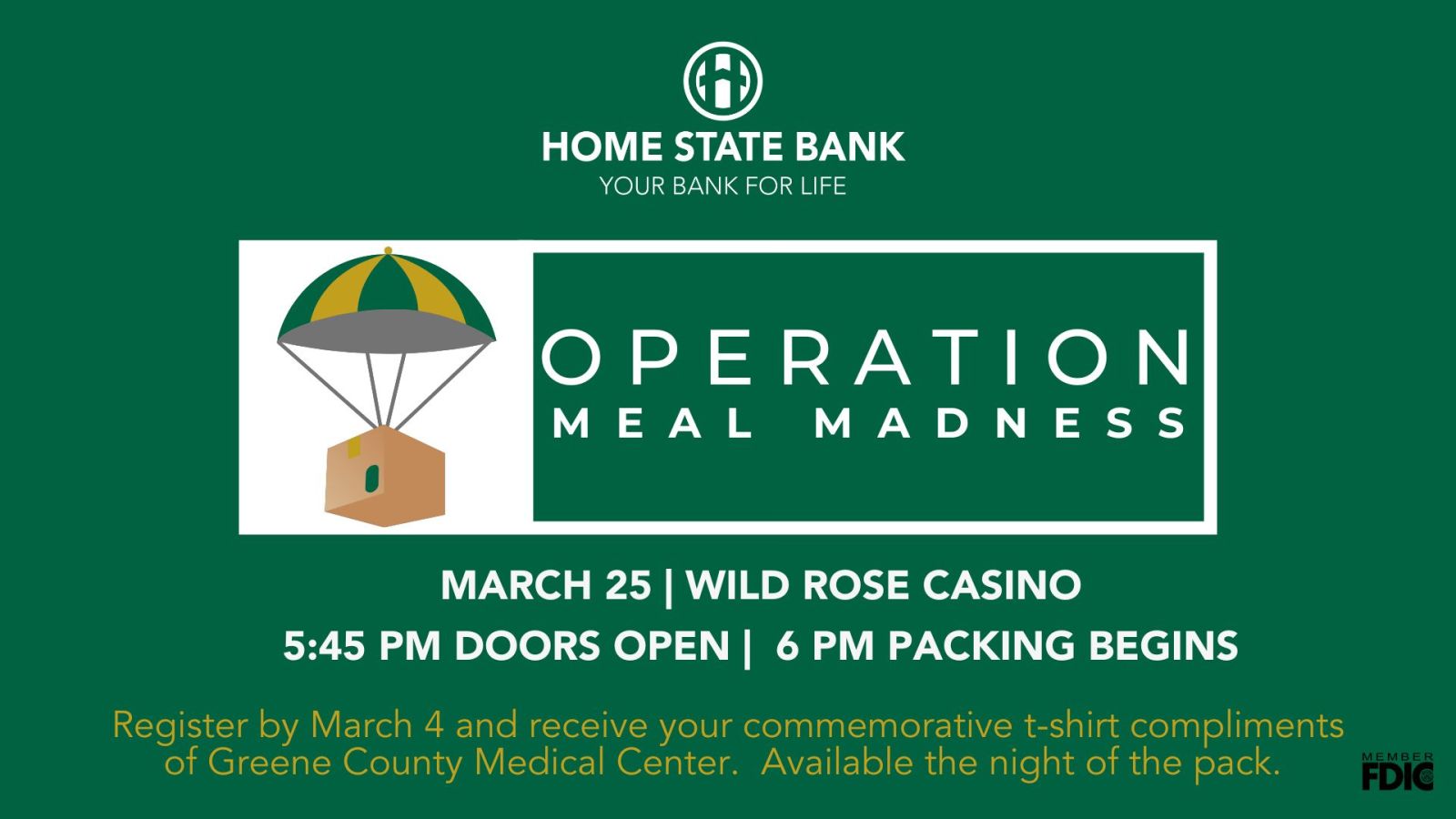 Doors will open at 5:45 pm, and the meal pack will begin at 6 pm.